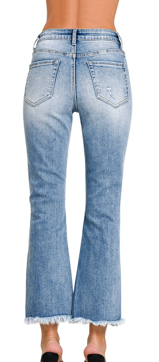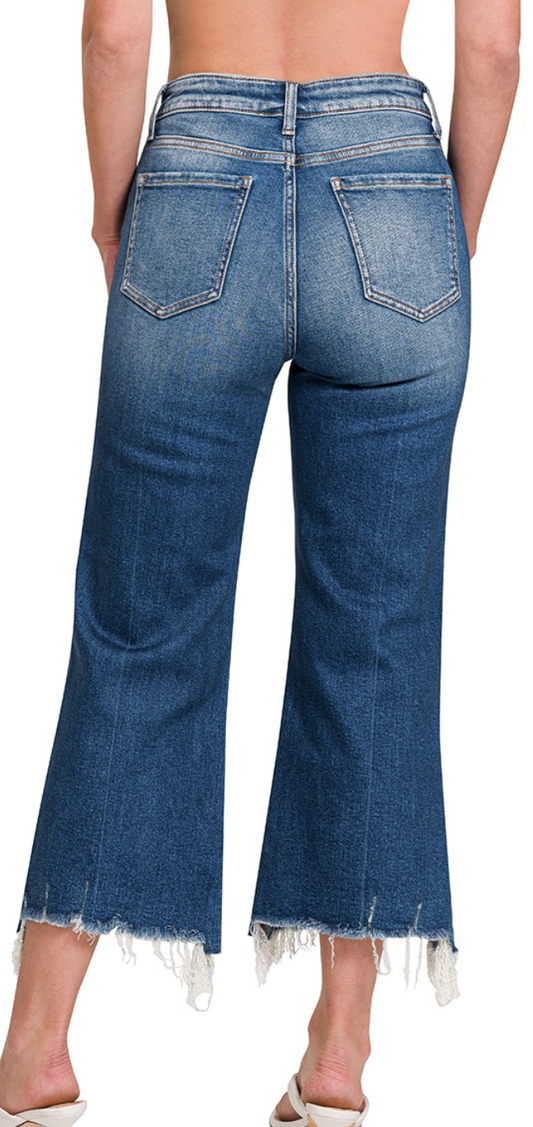 Acid Washed Frayed Cutoff Hem Straight Wide Pants Cabernet