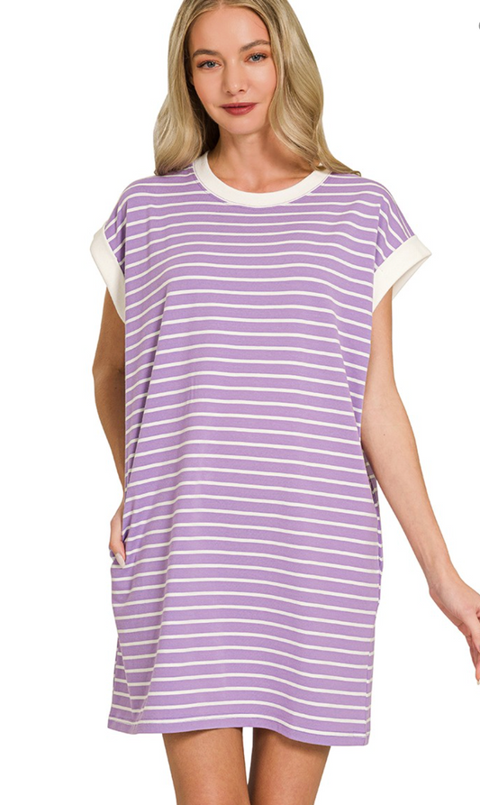 Stripe Collared Half Button Up T Shirt Dress Bright Blue