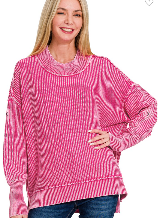 Ribbed Batwing Long Sleeve Boat Neck Sweater