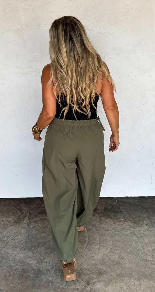 Woven Crinkle Wide Pants w/Pockets - Lt Grey