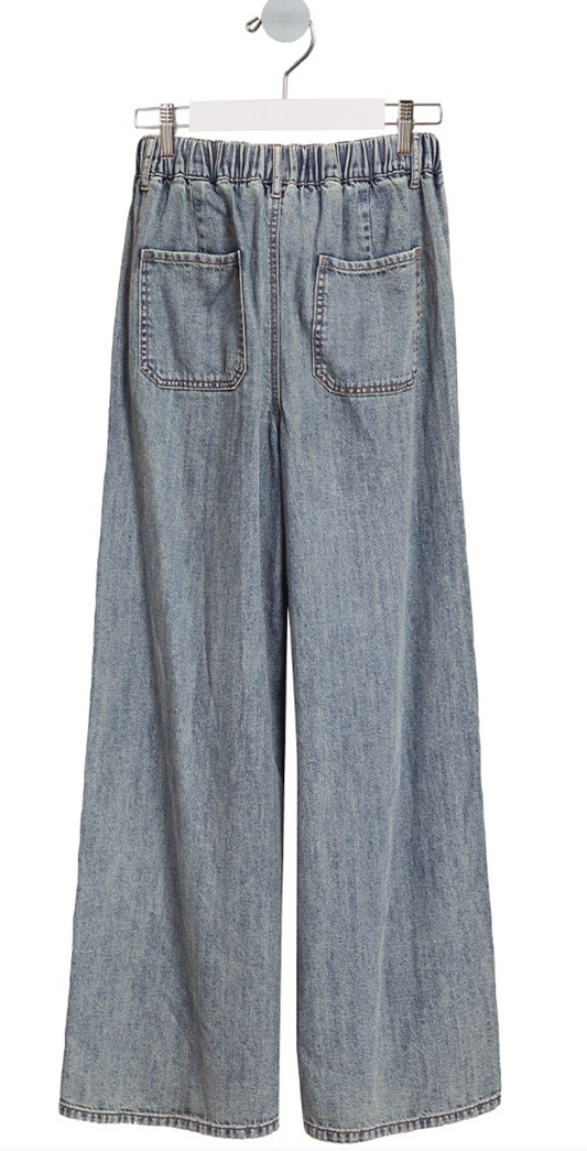 Wide Leg Drawstring Elastic Waistband Denim Pants