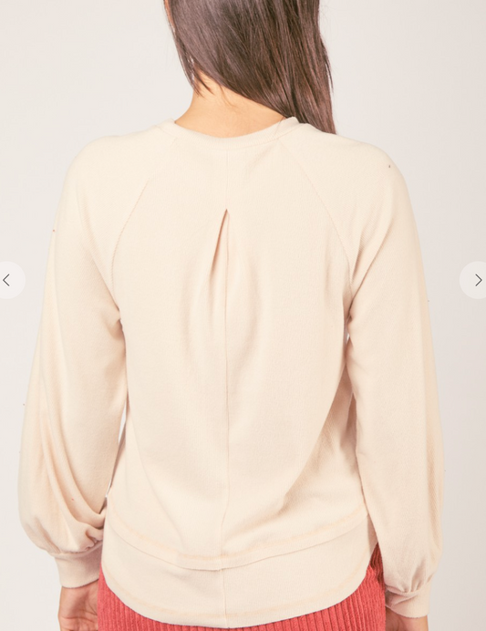 Raglan Sleeve Color Block Casual Textured Knit Top Cream