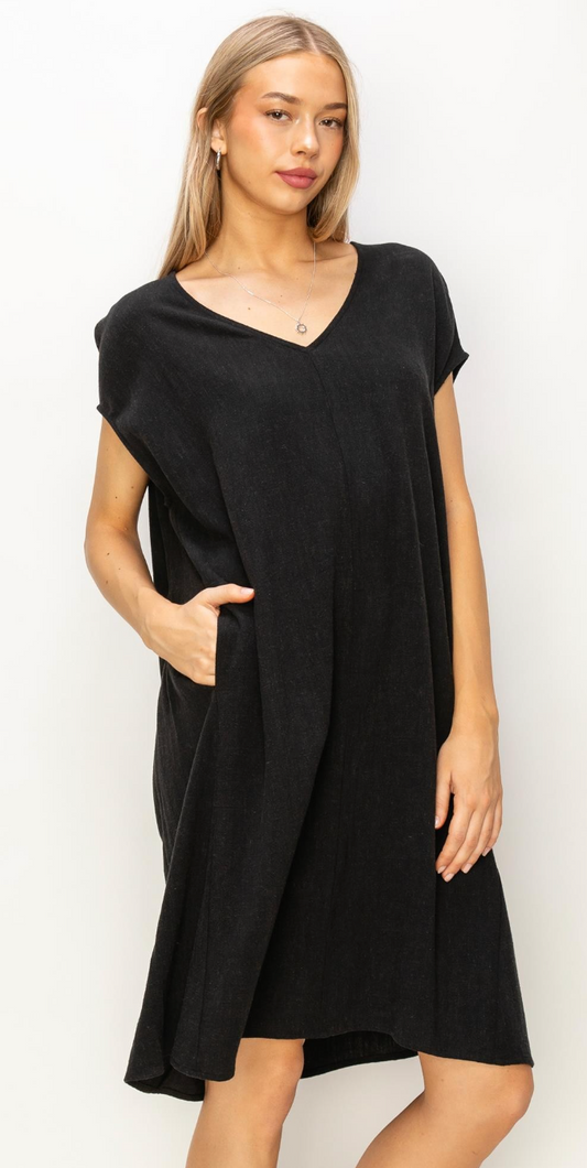 V Neck Oversized Linen Midi Dress